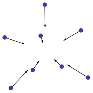 where \(r_{ij} = |q_i-q_j|\) is the Euclidean distance between particles i and j (the gravitational constant is normalized to G= 1). The force vector \(F_i\in R^d\) on the right-hand side can also be written as a partial gradient vector \(F_i = \nabla_i U\) where