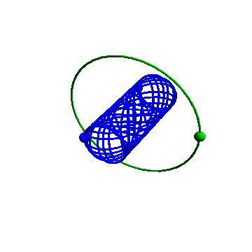 To get a nonrigid homographic solution it is still necessary to have a CC and the motion will still feature planar Keplerian ellipses. However, the ellipse corresponding to different bodies may lie in different planes. Some impression of this kind of motion can be gotten from Figure 10 which shows a solution based on the regular tetrahedron with four equal masses. The solution is a rigid motion in \(\mathbb{R}^4\) so the configuration is always a regular tetrahedron. The animation shows a three-dimensional projection in which the shape appears to change, but it is clear that each body is moving on its own circle in distinct planes. Elliptical orbits of the same kind are readily imagined. Thus the tetrahedron, which can exhibit only homothetic motions in \(\mathbb{R}^3\) has a much larger repertoire of homographic motions in \(\mathbb{R}^4\).