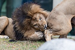 Biting can serve as a carrying mechanism for species such as beavers and ants, the raw power of their species-specific teeth allowing them to carry large objects. Beavers have a large tooth adapted for gnawing wood. Their jaw muscles are tuned to power through big trees and carry them back to their dam.[7] Ants use their powerful jaws to lift material back to the colony. They can carry several thousand times their weight due to their bite and are adapted to use this to forage for their colonies.[8] Fire ants use their strong bite to get a grip on prey, then inject a toxin via their stinger and carry the prey back to their territory.[9]