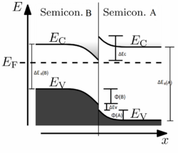 Prediction of the band alignment is at face value dependent on the heterojunction type, as well as whether or not the heterojunction in question is heterovalent or isovalent. However, quantifying this alignment proved a difficult task for a long time. Anderson's rule is used to construct energy band diagrams at heterojunctions between two semiconductors. It states that during the construction of an energy band diagram, the vacuum levels of the semiconductors on either side of the heterojunction should be equal.[1]