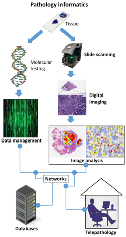 Major topics of pathology informatics, with major topics that underlie virtual microscopy, including slide scanning, digital imaging and networks.