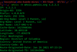 Prefix WhoIs is an open source project that develops and operates a free whois-compatible framework for stockpiling and querying various routing and registry information. Prefix WhoIs uses global BGP routing data learned from many ISP backbone routers. Other information sources are also supported, such as imported data from every regional Internet registry (AFRINIC, APNIC, ARIN, LACNIC, and RIPE) and geocoding information.