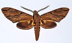 While a candidate moth, the Madagascan sphinx moth Xanthopan morganii, had been catalogued from the Congo region of Africa in the 1830s, the Congo is a bit far from Madagascar and Darwin had no knowledge of it.[6] In 1903, 20 after Darwin's death, a subspecies Xanthopan morganii praedicta (named praedicta in honor of Alfred Russel Wallace's prediction), which has an 20 centimeter-long tongue, was discovered,[8][7][6][9] though said subspecies was ultimately determined to be identical to the mainland species. Paradoxically, this particular sphinx moth has never been observed feeding on the orchid in the wild. In 1992, observations were made of the moth feeding on the flower and transferring pollen from plant to plant with both videos and stills. This was observed in the wild and confirmed further with studies in captivity.[6][7]