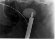 Where a CT scan is unavailable, an intravenous pyelogram may be performed to help confirm the diagnosis of urolithiasis. This involves intravenous injection of a contrast agent followed by a KUB film. Uroliths present in the kidneys, ureters, or bladder may be better defined by the use of this contrast agent. Stones can also be detected by a retrograde pyelogram, where a similar contrast agent is injected directly into the distal ostium of the ureter (where the ureter terminates as it enters the bladder).[60]