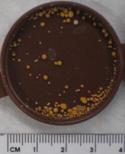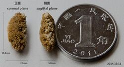 | A kidney stone, 8 millimeters (0.3 in) in diameter | |
