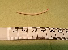 The contraceptive implant is hormone-based and highly effective, approved in more than 60 countries and used by millions of women around the world. The typical implant is a small flexible tube measuring about 40 mm (1.6 in) in length. It is most commonly inserted subdermally in the inner portion of the upper, non-dominant arm by a trained and certified health care provider.[6] After insertion, it prevents pregnancy by releasing progestin which inhibits ovulation.[6][7] The two most common versions are the single-rod etonogestrel implant and the two-rod levonorgestrel implant.[8]