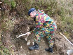 Mattocks made from antlers first appear in the British Isles in the Late Mesolithic. They were probably used chiefly for digging, and may have been related to the rise of agriculture.[8] Mattocks made of whalebone were used for tasks including flensing – stripping blubber from the carcass of a whale – by the broch people of Scotland and by the Inuit.[9]
