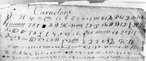 - ↑ Grover, Jerry. Translation of the "Caractors" Document. https://www.academia.edu/19655755.