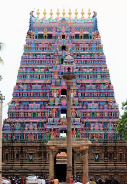 Another important temple is the Bhuvarahaswami Temple in Srimushnam, Tamil Nadu. It was built in the late 16th century by Krishnappa II, a Thanjavur Nayak ruler.[222] The image of Varaha is considered a svayambhu (self-manifested) image, one of the eight self-manifested Svayamvyakta kshetras. An inscription in the prakaram (circumambulating passage around the main shrine) quoting from the legend of the Srimushna Mahatmaya (a local legend) mentions the piety one derives in observing festivals during the 12 months of the year when the sun enters a particular zodiacal sign.[223] This temple is venerated by Hindus and Muslims alike. Both communities take the utsava murti (festival image) in procession in the annual temple festival in the Tamil month of Masi (February–March). The deity is credited with many miracles and called Varaha saheb by Muslims.[161]