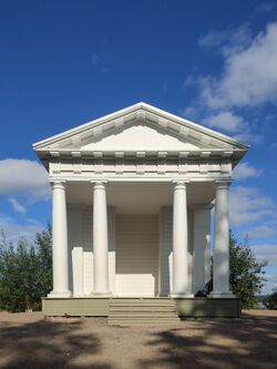 Neptune had only one temple in Rome. It stood near the Circus Flaminius, the Roman racetrack in the southern part of the Campus Martius, and dates back to at least 206 BC.[23] The temple was restored out by Gnaeus Domitius Ahenobarbus c. 40 BC, an event depicted on a coin struck by the consul. Within the temple was a sculpture of a marine group by Scopas Minor.[24][25] The Basilica Neptuni was later built on the Campus Martius, and was dedicated by Agrippa in honor of the naval victory of Actium.[26] This basilica supplanted the older temple, which had replaced an ancient altar.[27]