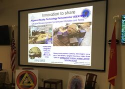 In combat, AR can serve as a networked communication system that renders useful battlefield data onto a soldier's goggles in real time. From the soldier's viewpoint, people and various objects can be marked with special indicators to warn of potential dangers. Virtual maps and 360° view camera imaging can also be rendered to aid a soldier's navigation and battlefield perspective, and this can be transmitted to military leaders at a remote command center.[214] The combination of 360° view cameras visualization and AR can be used on board combat vehicles and tanks as circular review system.
