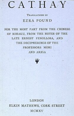 In 1913, Pound was contacted by the widow of the recently deceased Orientalist Ernest Fenollosa, who while in Japan had collected word-by-word translations and notes for 150 classical Chinese poems that fit in closely with this program. Chinese grammar offers different expressive possibilities from English grammar, a point that Pound subsequently made much of. For example, in Chinese, the first line of Li Po's (called "Rihaku" by Fenollosa's Japanese informants) poem The River Merchant's Wife: A Letter is a spare, direct juxtaposition of 5 characters that appear in Fenollosa's notes as