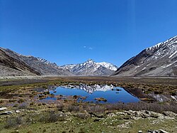 ↑The Dras River is also referred to as Shingo River by some authors. The latter flows from Pakistan-administered Baltistan and joins the Dras River a few miles upstream from Kargil. Both the names are used for the combined river.