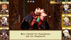 Players begin the game by selecting characters for their party, choosing each individual's race, gender, stats, alignment, and major.[2] Both race and gender are permanent, but a character's alignment and major can be changed when visiting a school.[3] There are ten playable races in the game: Human, Elf, Dwarf, Erdgeist, Halfling, Sprite, Felpier, Drake, Diablon, and Celestian.[4] Each race has different attitudes towards the others requiring a balance of compatibility to be struck.[3] Each race is imbued with different strengths; e.g. Halflings are clever thieves and Drakes are able warriors.[2] The party starts at Particus Academy which serves as a home base where players can regenerate Magic points, purchase equipment, start quests in the labyrinths, and practice alchemy on items obtained in mazes.[3][5] Once a dungeon quest is started, enemies may be encountered randomly as players navigate the maze of corridors.[3] The turn-based combat system during battles uses a row-based character line-up, where characters in the back rows with short-range weapons are unable to attack distant enemies.[3] As players progress through the dungeon, a tension gauge accumulates after each battle allowing the party to use gambits during future engagements.[3]