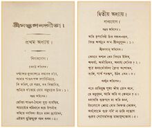 According to Jeaneane Fowler, "the dating of the Gita varies considerably" and depends in part on whether one accepts it to be a part of the early versions of the Mahabharata, or a text that was inserted into the epic at a later date.[49] The earliest "surviving" components therefore are believed to be no older than the earliest "external" references we have to the Mahabharata epic. The Mahabharata – the world's longest poem – is itself a text that was likely written and compiled over several hundred years, one dated between "400 BCE or little earlier, and 2nd century CE, though some claim a few parts can be put as late as 400 CE", states Fowler. The dating of the Gita is thus dependent on the uncertain dating of the Mahabharata. The actual dates of composition of the Gita remain unresolved.[49] While the year and century is uncertain, states Richard Davis,[50] the internal evidence in the text dates the origin of the Gita discourse to the Hindu lunar month of Margashirsha (also called Agrahayana, generally December or January of the Gregorian calendar).[51]