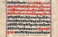 The Bhagavad Gita manuscripts exist in numerous Indic scripts.[91] These include writing systems that are currently in use, as well as early scripts such as the Sharada script, now dormant.[91][92] Variant manuscripts of the Gita have been found on the Indian subcontinent[64][93] Unlike the enormous variations in the remaining sections of the surviving Mahabharata manuscripts, the Gita manuscripts show only minor variations and the meaning is the same.[64][93]