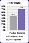 The FOLFOX study also demonstrated an improvement in treatment outcomes.[25] Positive response increased from 46% in the BSA-dosed group to 70% in the dose-adjusted group. Median progression free survival (PFS) and overall survival (OS) both improved by six months in the dose adjusted group.[25]