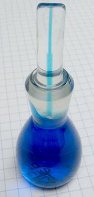 A pycnometer (from Ancient Greek:), also called pyknometer or specific gravity bottle, is a device used to determine the density of a liquid. A pycnometer is usually made of glass, with a close-fitting ground glass stopper with a capillary tube through it, so that air bubbles may escape from the apparatus. This device enables a liquid's density to be measured accurately by reference to an appropriate working fluid, such as water or mercury, using an analytical balance.[citation needed]