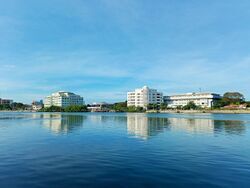 The Port of Iloilo is the port serving the general area of Iloilo and the premier port in the Western Visayas Region. The new Port of Iloilo is located on a site away from the older port facilities. It is situated in the southern coast of Panay Island, in Panay Gulf. With Guimaras Island guarding the port from violent storms, it has one of the safest and most natural harbors in the Philippines