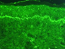 Several techniques are used to detect ANAs. The most widely used is indirect immunofluorescence (IF). The pattern of fluorescence suggests the type of antibody present in the people's serum. Direct immunofluorescence can detect deposits of immunoglobulins and complement proteins in the people's skin. When skin not exposed to the sun is tested, a positive direct IF (the so-called lupus band test) is an evidence of systemic lupus erythematosus.[72]