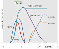 The virus is transmitted by exposure to infectious blood or body fluids.[4] In areas where the disease is common, infection around the time of birth or from contact with other people's blood during childhood are the most frequent methods by which hepatitis B is acquired.[4] In areas where the disease is rare, intravenous drug use and sexual intercourse are the most frequent routes of infection.[4] Other risk factors include working in healthcare, blood transfusions, dialysis, living with an infected person, travel in countries with high infection rates, and living in an institution.[4][5] Tattooing and acupuncture led to a significant number of cases in the 1980s; however, this has become less common with improved sterilization.[10] The hepatitis B viruses cannot be spread by holding hands, sharing eating utensils, kissing, hugging, coughing, sneezing, or breastfeeding.[5] The infection can be diagnosed 30 to 60 days after exposure.[4] The diagnosis is usually confirmed by testing the blood for parts of the virus and for antibodies against the virus.[4] It is one of five main hepatitis viruses: A, B, C, D, and E.[11] During an initial infection, care is based on a person's symptoms.[4] In those who develop chronic disease, antiviral medication such as tenofovir or interferon may be useful; however, these drugs are expensive.[4] Liver transplantation is sometimes recommended for cases of cirrhosis or hepatocellular carcinoma.[4]