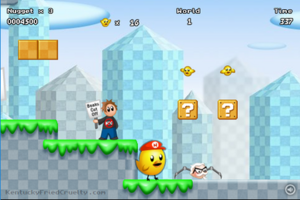 Edmund McMillen[14] from Team Meat, the developer of the indie game Super Meat Boy, created various accounts on PETA's official forums to try to get his game parodied by PETA. PETA developed Super Tofu Boy and released it in December 2010.[15] It stars Tofu Boy, an anthropomorphic cube of tofu whose goal is to rescue Bandage Girl, the girlfriend of the original game's protagonist Meat Boy, from Meat Boy.[16] It plays as a standard platformer[15] and is peppered with inter-level pro-vegetarian messages and facts about meat consumption and the livestock industry.[17][18] Team Meat responded by adding Tofu Boy as a playable character. Tofu Boy is unlocked by typing the word “petaphile” in the character selection screen. As a playable character, he is very slow and has horrible jumps, but players would always get a Grade A+ regardless of how long it took to finish a level. He would eventually return in the sequel, Super Meat Boy Forever.