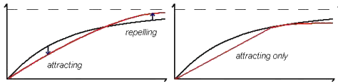 Definition 1. Consider a homogeneous signal process with intensity \(\lambda\ .\) The signals attract each other from a distance \(t>0\ ,\) if \(F(t)< 1-e^{-\lambda t}\ .\) Analogously, the signals repel each other from a distance \(t>0\ ,\) if \(F(t)> 1-e^{-\lambda t}\ .\) The difference \(|1-e^{-\lambda t}-F(t)|\) is called the intensity of attracting (or repelling) at \(t\ .\)