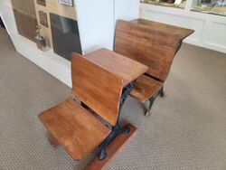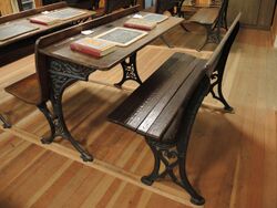A student desk can be any desk form meant for use by an enrollee in elementary, secondary or postsecondary education. Anna Breadin designed and patented a one-piece school desk in the late 1880s that was built with a table section attached in front of a wooden seat and back rest. Before this, most students in America sat either on chairs or long benches at long tables.[11]