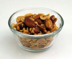 The effect is of interest to food manufacturing and similar operations.[3] Once a homogeneous mixture of granular materials has been produced, it is usually undesirable for the different particle types to segregate. Several factors determine the severity of the Brazil nut effect, including the sizes and densities of the particles, the pressure of any gas between the particles, and the shape of the container. A rectangular box (such as a box of breakfast cereal) or cylinder (such as a can of nuts) works well to favour the effect,[citation needed] while a container with outwardly slanting walls (such as in a conical or spherical geometry) results in what is known as the reverse Brazil nut effect.[11]