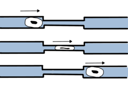 Depiction of a cell passing through a microchannel
