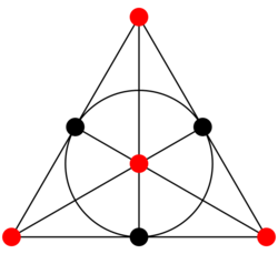 In a finite projective plane π (not necessarily Desarguesian) a set A of k (k ≥ 3) points such that no three points of A are collinear (on a line) is called a k - arc. If the plane π has order q then k ≤ q + 2, however the maximum value of k can only be achieved if q is even.[1] In a plane of order q, a (q + 1)-arc is called an oval and, if q is even, a (q + 2)-arc is called a hyperoval.