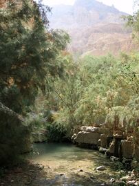 Oases often have human histories that are measured in millennia. Archeological digs at Ein Gedi in the Dead Sea Valley have found evidence of settlement dating to 6,000 BC.[12] Al-Ahsa on the Arabian Peninsula shows evidence of human residence dating to the Neolithic.[13]