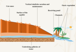 There are 90 “major oases” within the Sahara Desert.[4] Some of their fertility may derive from irrigation systems called foggaras, khettaras, lkhttarts, or a variety of other regional names.[10][11]