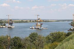 Vidin is the westernmost important Bulgarian Danube port and is situated on one of the southernmost sections of the river. The New Europe Bridge, completed in 2013, connects Vidin to the Romanian town of Calafat on the opposite bank of the Danube. Previously, a ferry located 2 km (1 mi) from the town was in use for that purpose.