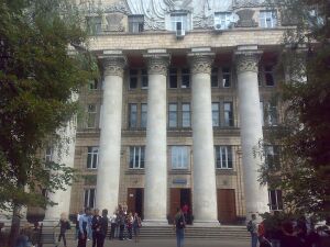 The Kyiv National Economic University (Ukrainian: Київський національний економічний університет імені Вадима Гетьмана), named after Vadym Hetman, is a higher educational institution in Kiev, Ukraine , and a self-governing (autonomous) research National University.[2] The university was founded in 1906.[1] The main building is located on Victory Avenue, 54/1. Its estimated quality of education and researches puts the university on the third place in National ranking of the universities (Compass, 2012) in Ukraine.[3] According to one of the leading university rankings in the world (Eduniversal, 2015), KNEU occupied the second position among universities in Ukraine.[4] The university has been named in honour of Vadym Hetman since 2005.[1] He was a Ukrainian politician and financier, who was killed in 1998.