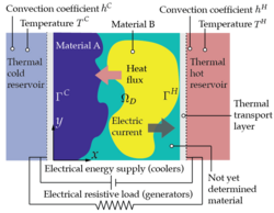 Thermoelectricity is a multi-physic problem which concerns the interaction and coupling between electric and thermal energy in semi conducting materials. Thermoelectric energy conversion can be described by two separately identified effects: The Seebeck effect and the Peltier effect. The Seebeck effect concerns the conversion of thermal energy into electric energy and the Peltier effect concerns the conversion of electric energy into thermal energy.[15] By spatially distributing two thermoelectric materials in a two dimensional design space with a topology optimisation methodology,[16] it is possible to exceed performance of the constitutive thermoelectric materials for thermoelectric coolers and thermoelectric generators.[17]