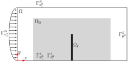 [14] The objective of the design problem is to minimize the structural compliance. The fluid-structure-interaction problem is modelled with Navier-Cauchy and Navier-Stokes equations.