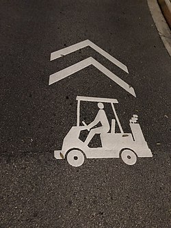 Reportedly, the first use of a motorized cart on a golf course was by JK Wadley of Texarkana, who saw a three-wheeled electric cart being used in Los Angeles to transport senior citizens to a grocery store. Later, he purchased a cart and found that it worked poorly on a golf course.[2] The first electric golf cart was custom-made in 1932, but did not gain widespread acceptance.[3] In the 1930s until the 1950s the most widespread use of golf carts was for those with disabilities who could not walk far.[4] By the mid-1950s the golf cart had gained wide acceptance with US golfers.[5]