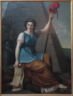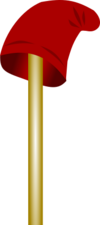 When the motif was revived during the 16th century it was mostly carried by national or political personifications. Its first appearance as an attribute of Liberty in an Italian emblem book was in 1556, later followed by many others.[4] In his "Apotheosis of Venice" (1585)[5] in the Doge's Palace, Paolo Veronese has the ascendant Republic of Venice (personified as a woman) flanked by several symbolic persons, one of whom represents Liberty, dressed as a peasant hoisting a red Phrygian cap on a spear.[6]
