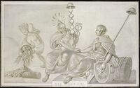 Dutch allegory for the Netherlands/US trade treaty, 1782. Personification of the Americas, left, "Indian princess" and classical hybrid for the US centre, Dutch Maiden right.