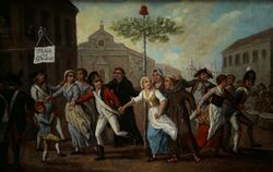 "British Liberty" in The Contrast: 1792: Which Is Best, by Thomas Rowlandson. Anti-French cartoon.