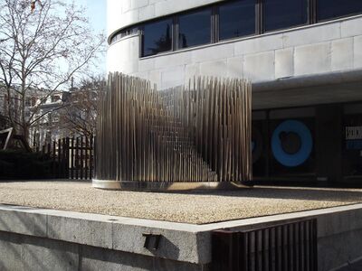 Research employing acoustic metamaterials began in 2000 with the fabrication and demonstration of sonic crystals in a liquid.[7] This was followed by transposing the behavior of the split-ring resonator to research in acoustic metamaterials.[8] After this, double negative parameters (negative bulk modulus βeff and negative density ρeff) were produced by this type of medium.[9] Then a group of researchers presented the design and test results of an ultrasonic metamaterial lens for focusing 60 kHz.[10]