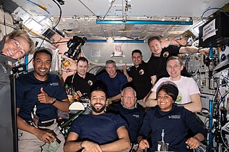 The crew was later replenished by subsequent crew rotation missions in the expedition, SpaceX Crew-7, consisting of NASA astronaut Jasmin Moghbeli, Danish astronaut Andreas Mogensen, Satoshi Furukawa from Japan, and Russian cosmonaut Konstantin Borisov, and Soyuz MS-24, consisting of Russian cosmonauts Oleg Kononenko and Nikolai Chub (both on a year long ISS mission) and another American astronaut Loral O'Hara. The space station was also visited by a non-expedition crew, Axiom Mission 2, consisting of former NASA astronaut Peggy Whitson (who had previously commanded the station twice during Expedition 16 and Expedition 51), John Shoffner, Ali AlQarni, and Rayyanah Barnawi.[2]