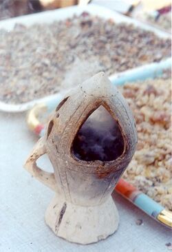 Frankincense is often prepared inside a censer, such as the meerschaum dabqaad traditionally used in Horn of Africa.