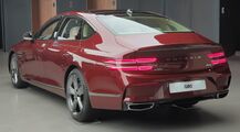After the design release on July 5, 2021,[32] the Genesis G80 Sport was released on August 10, 2021.[33] This model introduced redesigned grills, bumpers, headlamps and wheels compared to the non-Sport model. A Cavendish Red paint color is exclusive for the G80 sports model. Two gasoline engines and a diesel are available.[34]