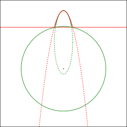 One can also ask what launch angle allows the lowest possible launch velocity. This occurs when the two solutions above are equal, implying that the quantity under the square root sign is zero. This requires solving a quadratic equation for [math]\displaystyle{ v^2 }[/math], and we find
