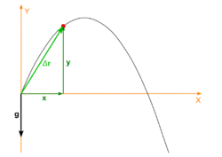 The greatest height that the object will reach is known as the peak of the object's motion. The increase in height will last until [math]\displaystyle{ v_y=0 }[/math], that is,