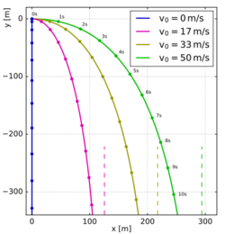 [math]\displaystyle{ t=\frac{x}{v_0\cos(\theta)} }[/math]