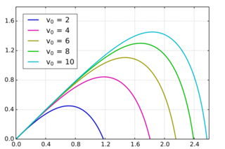 Maximum height of a projectile for vertical launch ([math]\displaystyle{ \theta=90^\circ }[/math]):