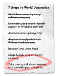 The team focused on the Macintosh platform, not Windows-based personal computers, because the Mac market was more open and Jones had been raised on the platform. While Jones was responsible for many of the creative and technical aspects, Seropian was a businessman and marketer.[19] "What I liked about [Seropian] was that he never wasted any money", Jones recalled. With no money to hire other personnel, the two assembled Minotaur boxes by hand in Seropian's apartment.[17] While the pair remained low on funds—Seropian's wife was largely supporting him—the modest success of Minotaur gave the duo enough money to develop another project.[23]